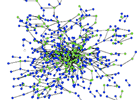 Continuing motion brings nodes closer to their final position. The graph no longer keeps its circular shape, and it is clear that some nodes are going to remain in the center, while others will remain on the outskirts.